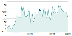 | 6/12/2014 | -0.10 / -0.79% | 12.70 | 12.70 | 12.50 | 12.60 | 12.60 | 7.28 | 138,705 |   |