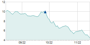 | 5/19/2014 | +0.50 / +4.35% | 11.50 | 12.30 | 11.20 | 12.00 | 12.00 | 6.93 | 373,200 |   |