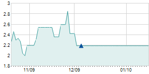 | 12/9/2011 | -0.20 / -2.25% | 8.50 | 8.80 | 8.50 | 8.70 | 8.70 | 2.15 | 12,600 |   |