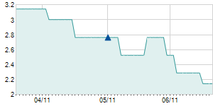 | 6/11/2012 | -0.30 / -9.38% | 2.90 | 2.90 | 2.90 | 2.90 | 2.90 | 1.80 | 100 |   |