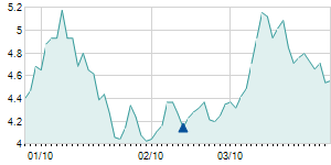 | 4/10/2012 | -0.10 / -0.94% | 10.70 | 10.90 | 10.40 | 10.50 | 10.62 | 2.50 | 3,605,500 |   |