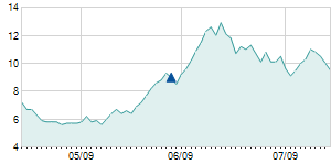 | 2/6/2013 | +0.60 / +8.57% | 7.00 | 7.60 | 7.00 | 7.60 | 7.37 | 1.44 | 2,340,800 |   |