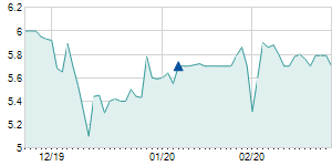 | 11/5/2014 | -0.20 / -1.25% | 15.80 | 15.80 | 15.80 | 15.80 | 15.80 | 5.43 | 8,000 |   |