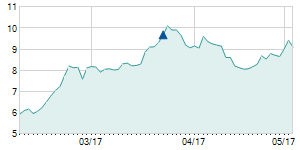 | 7/28/2015 | -0.10 / -0.55% | 17.60 | 18.00 | 17.00 | 18.00 | 17.43 | 6.76 | 2,900 |   |