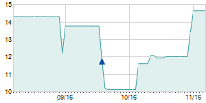 | 9/12/2022 | -0.35 / -2.06% | 16.30 | 16.80 | 15.80 | 16.60 | 16.21 | 14.66 | 15,700 |   |
