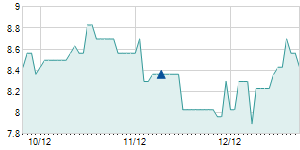 | 11/12/2013 | +0.20 / +1.38% | 14.60 | 14.70 | 14.60 | 14.70 | 14.70 | 2.59 | 232,050 |   |