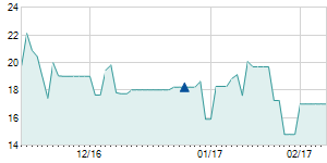 | 2/21/2019 | +1.60 / +9.82% | 17.90 | 17.90 | 17.90 | 17.90 | 17.90 | 12.26 | 601,600 |   |