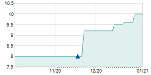 | 12/9/2016 | -0.09 / -2.09% | 4.40 | 4.40 | 4.20 | 4.21 | 4.30 | 4.21 | 5,300 |   |