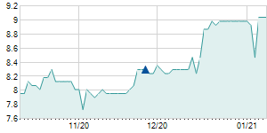 | 3/15/2016 | +0.40 / +5.00% | 8.40 | 8.50 | 8.30 | 8.40 | 8.41 | 8.04 | 40,440 |   |