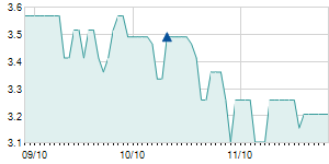 | 9/9/2021 | -0.10 / -2.67% | 3.61 | 3.88 | 3.60 | 3.65 | 3.71 | 3.65 | 9,700 |   |