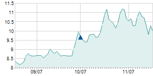 | 9/19/2024 | +0.25 / +2.30% | 10.85 | 11.15 | 10.75 | 11.10 | 10.93 | 11.10 | 984,700 |   |