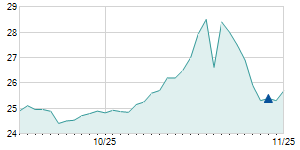 | 4/26/2012 | -0.70 / -2.72% | 24.80 | 25.00 | 24.70 | 25.00 | 25.00 | 5.45 | 5,600 |   |