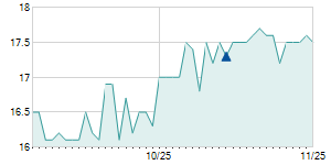 | 8/31/2017 | -2.40 / -3.90% | 63.00 | 63.00 | 58.50 | 59.10 | 59.46 | 18.07 | 370 |   |