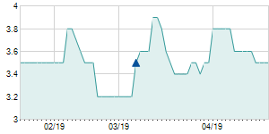 | 3/17/2022 | -0.40 / -3.51% | 11.40 | 11.80 | 10.50 | 11.00 | 11.36 | 9.99 | 4,400 |   |