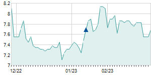 | 6/30/2021 | -0.12 / -1.52% | 7.85 | 8.12 | 7.73 | 7.78 | 7.90 | 7.78 | 8,545,900 |   |
