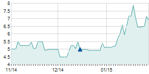 | 10/19/2017 | +0.10 / +2.63% | 3.80 | 4.00 | 3.80 | 3.90 | 3.91 | 3.83 | 1,280 |   |