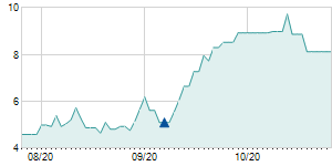 Closing price on 9/20/2017