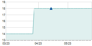| 12/6/2021 | -0.60 / -4.11% | 16.00 | 16.00 | 13.60 | 14.00 | 14.24 | 8.57 | 27,112 |   |