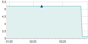 | 3/11/2020 | -2.90 / -3.63% | 80.40 | 80.40 | 74.40 | 77.00 | 76.55 | 33.25 | 1,996,560 |   |
