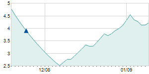 | 11/4/2009 | -0.10 / -0.18% | 53.20 | 58.00 | 52.50 | 55.50 | 54.74 | 17.70 | 3,738,500 |   |