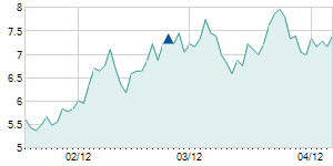 | 3/3/2021 | +0.50 / +6.76% | 7.40 | 8.00 | 7.40 | 7.90 | 7.61 | 6.64 | 117,300 |   |