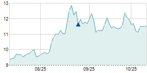 | 12/26/2018 | +0.30 / +2.50% | 12.00 | 12.50 | 11.70 | 12.30 | 12.03 | 12.19 | 123,300 |   |