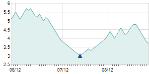 | 8/7/2015 | -0.30 / -5.00% | 6.00 | 6.00 | 5.70 | 5.70 | 5.84 | 2.46 | 139,400 |   |
