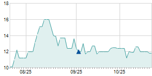 | 12/12/2016 | -0.50 / -2.92% | 17.10 | 17.10 | 16.60 | 16.60 | 16.78 | 15.08 | 294,210 |   |