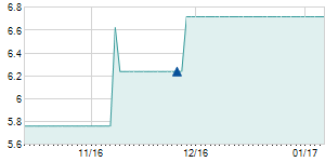 | 11/30/2016 | +0.10 / +0.60% | 16.50 | 16.80 | 16.50 | 16.70 | 16.71 | 15.17 | 286,570 |   |