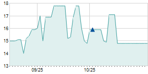 | 8/18/2023 | -0.40 / -3.64% | 11.00 | 11.00 | 10.60 | 10.60 | 10.78 | 8.72 | 9,000 |   |