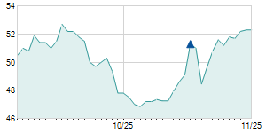 | 9/19/2019 | -1.30 / -0.98% | 130.00 | 132.20 | 130.00 | 130.80 | 131.24 | 57.23 | 48,800 |   |